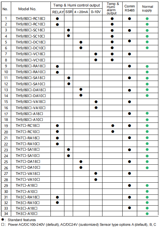 d). With PID heating function, ON/OFF heating/cooling function, compressor time-delay cooling function, ON/OFF humidification and dehumidification function.