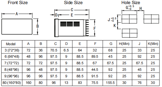 Control output | Relay output, SSR output, DC 4~20mA output, DC 0~10V output (customized) |
